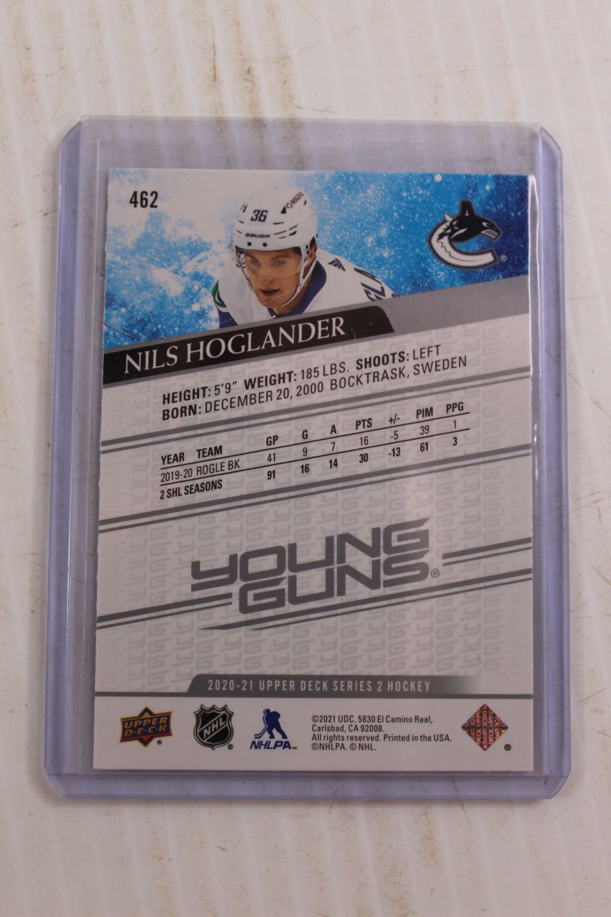 Nils Hoglander Young Guns Rookie Hockey Card