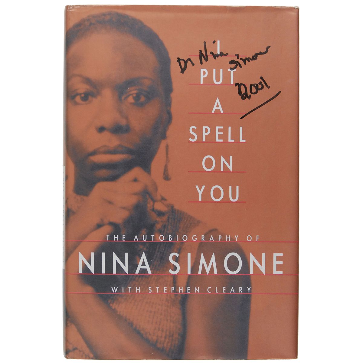 Signed book: I Put a Spell on You. First American edition. NY: Pantheon Books, 1991. Hardcover with dust jacket, 6.25 x 9.5, 181 pages. Signed on the front of the dust jacket in black felt tip, “Dr. Nina Simone, 2001.” In fine condition. Consignor notes that this was signed at the Heathman Hotel the day after her 2001 performance in Portland.
