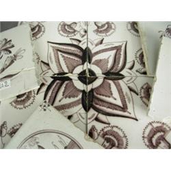 Nine 18th century blue and white delft tiles, one polychrome decorated with children playing with...