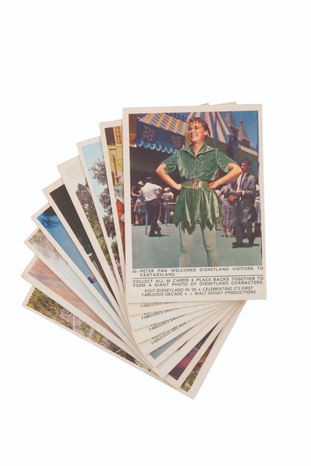 (Donruss, 1966) Nine cards from the Disneyland 10th anniversary set of 66 photo trading cards by Donruss. The cards are in very good condition with light pencil notations on the backs.