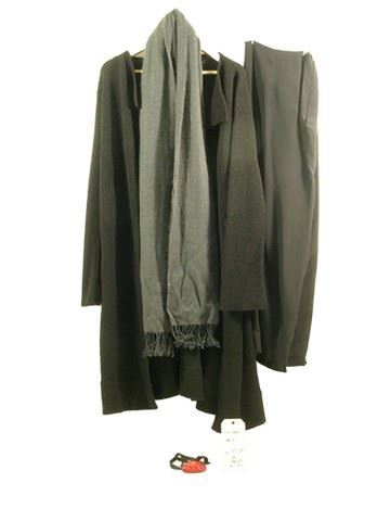 Just released from archives is the Academy Award nominated movie, Nine (2009)! This is Lilli's (Judi Dench) screen worn, hero, soft black 'Pingush' long open front coat, grey cashmere with fringe scarf, black peg leg custom trousers, and red silk with black silk string pin cushion. Includes wardrobe tag!