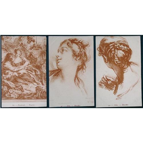 Nine antique postcards of Francois Boucher (1703-1770) paintings from various museums: