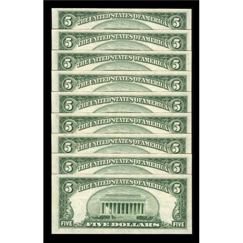 Nine Consecutive Fr. 1656* $5 1953A Silver
