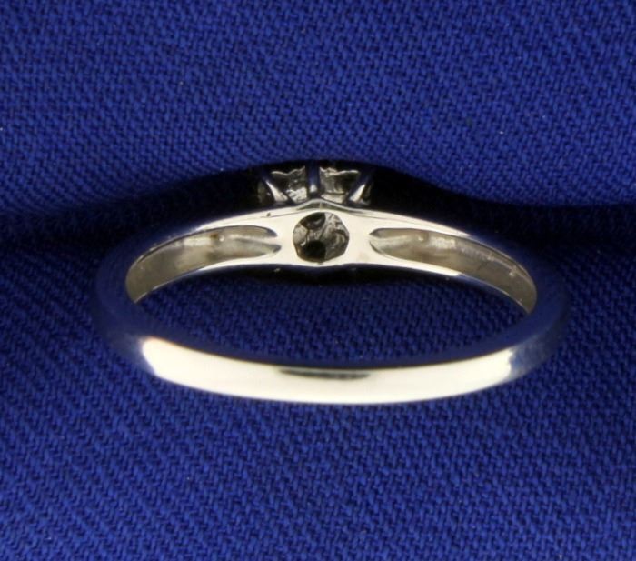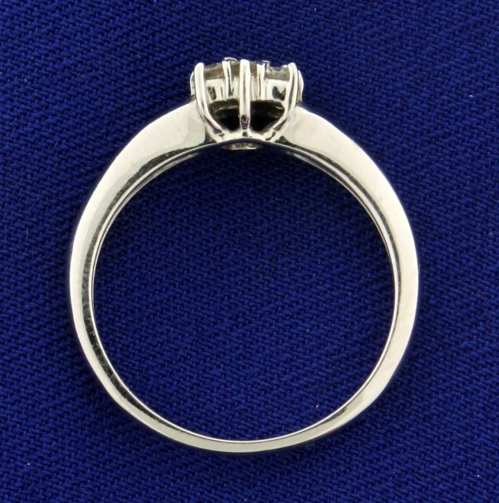 In 14k white gold. Contains nine high quality .02ct round diamonds, I color/I clarity. Diamonds are set together to look like one huge princess cut square diamond. Size 6 3/4. 2.7g.