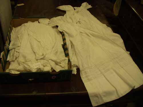 Nine Edwardian baby gowns, five petticoats and two vests....