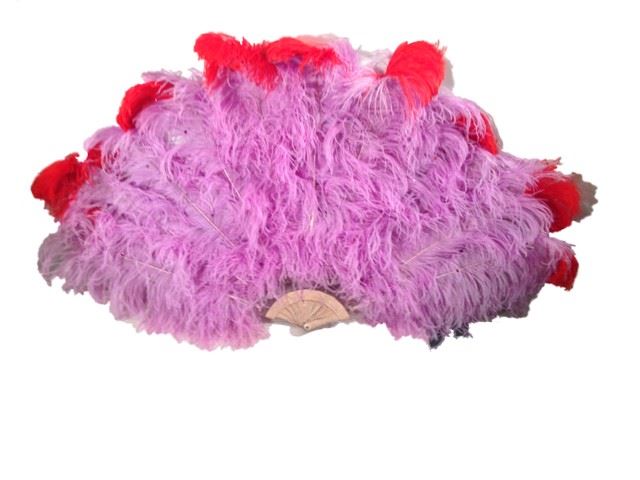 Dancer's purple and red feather with multi color sequins, oversized hand fan. (approx. 50" x 30")