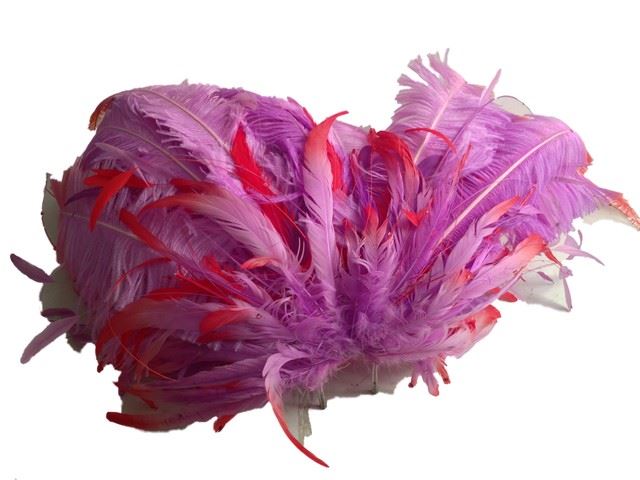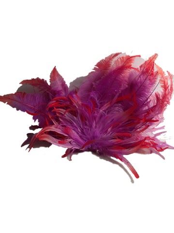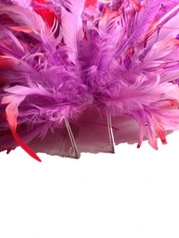 Female Dancer , screen worn, feather headpiece with purple and red feathers and jewel accents.(32x23)