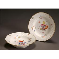 Nine Meissen Floral Decorated Soup Bowls, After 1934, Each polychrome decorated with a differ...
