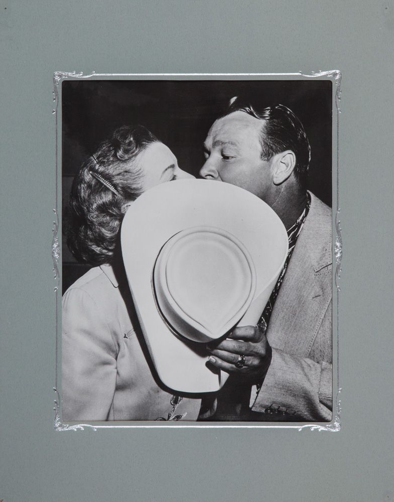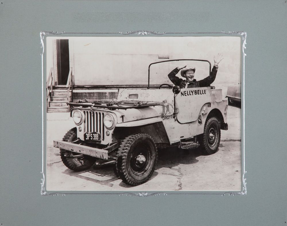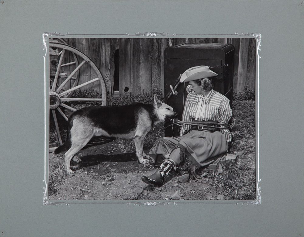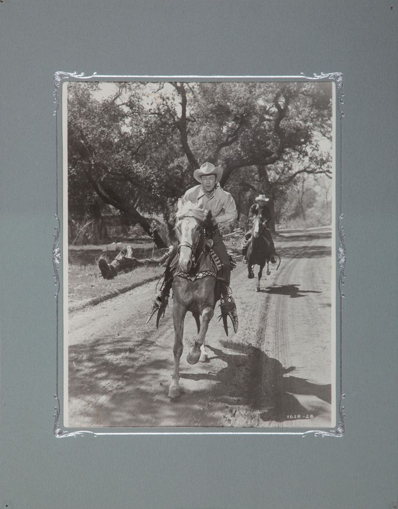 Nine Original Movie Still Photos of Roy and Dale. A collection of 9 black and white photos (matted) of Roy, Dale, Bullet, Nellybelle and others. a) Bullet. b) Action Scene. c) Bullet saves Dale. d) Bullet and Dale. e) Roy and Dale smooching. f) Saving the Stagecoach ("Sheriff of Tombstone" written in pencil on verso). g) Nellybelle and the Prisoners. h) Roy Galloping on Trigger ("Ridin Down the Canyon" written in ink on verso). i) Pat and Nellybelle. All with Christie's tags on reverse. Provenance: Roy Rogers and Dale Evans Museum, Victorville, CA and Branson, MO;. to Christie's, July 2010; to present owner. Includes Certificate of Authenticity signed by Roy "Dusty" Rogers, Jr.