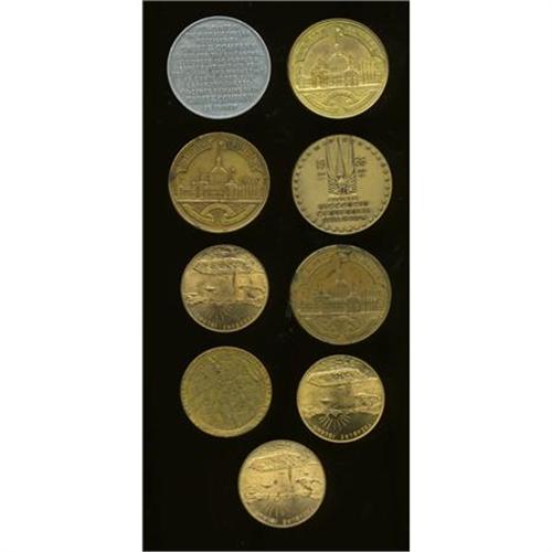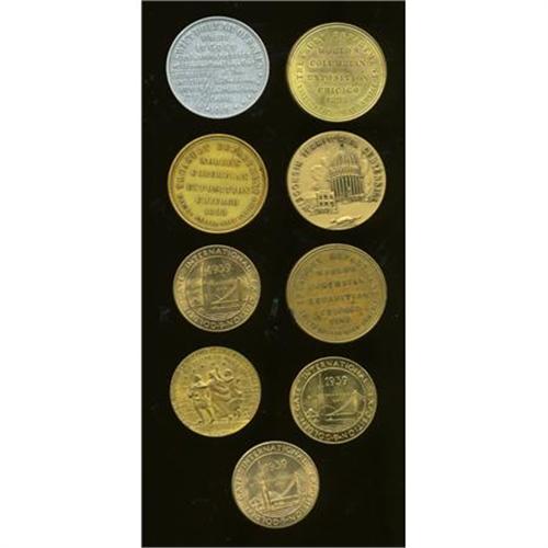<B>Nine-Piece Assortment of So-Called Dollars.</B></I> Bronze/aluminum. Includes: <B>HK-154, HK-155 (two pieces), HK-327, HK-481 (three pieces), HK-696, </B></I>and <B>HK-907.</B></I><BR><BR><b>Shipping:</b> Coins & Currency (<a target="_blank" href="http://www.heritageauctions.com/common/shipping.php">view shipping information</a>)