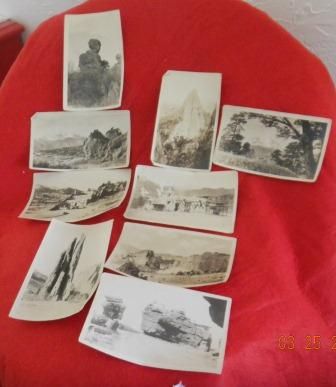 Ten items consisting of Nine Southwest photos, photos measure 4 by 6 inches, Circa 1930's. One large Black Navajo sterling silver with black and white stones. Ring is signed, in good condition. Circa 1950. Shipping 15.00