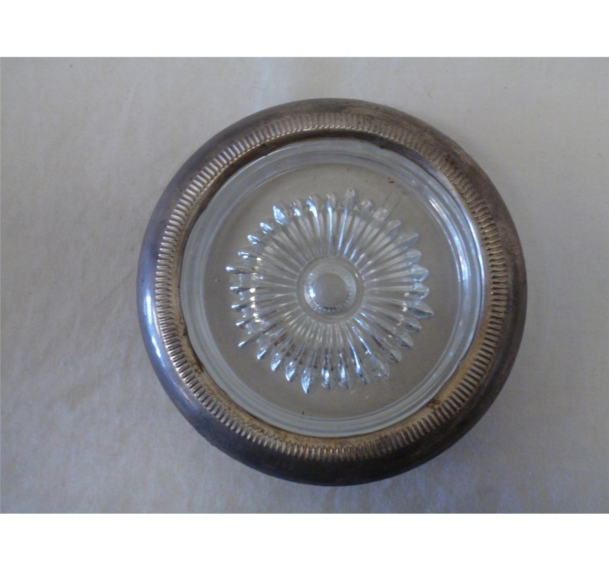 Nine Sterling and glass coasters of assorted patterns. Measurements: 4" Diameter - Shipping charge are for the United States. The shipping on this lot is $15.00. Outside the United States there will be additional shipping fees.