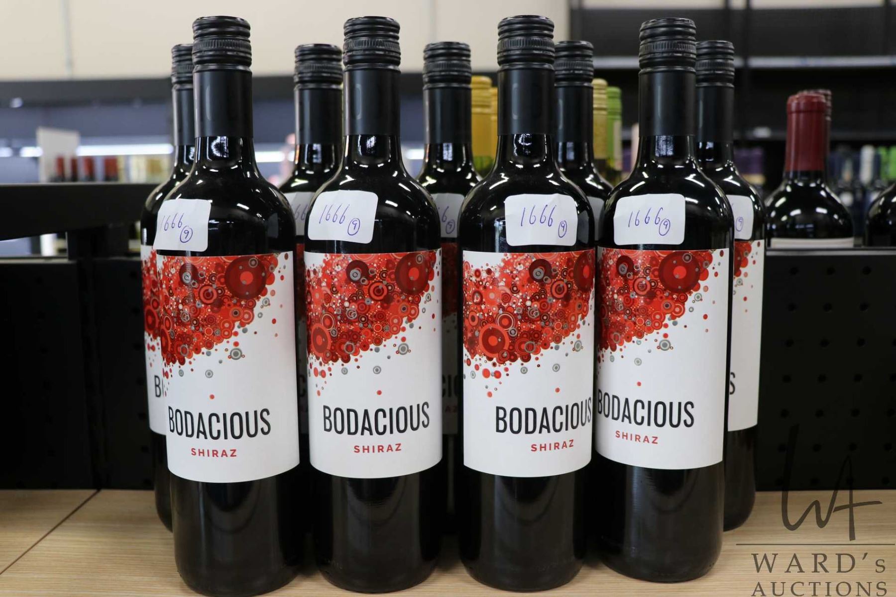 Nine bottles of Bodacious Shiraz 750ml / 12.5% ABV Note: Alcohol cannot be insured by any courier in Canada. Local pick up is recommended. Canadian bidders only