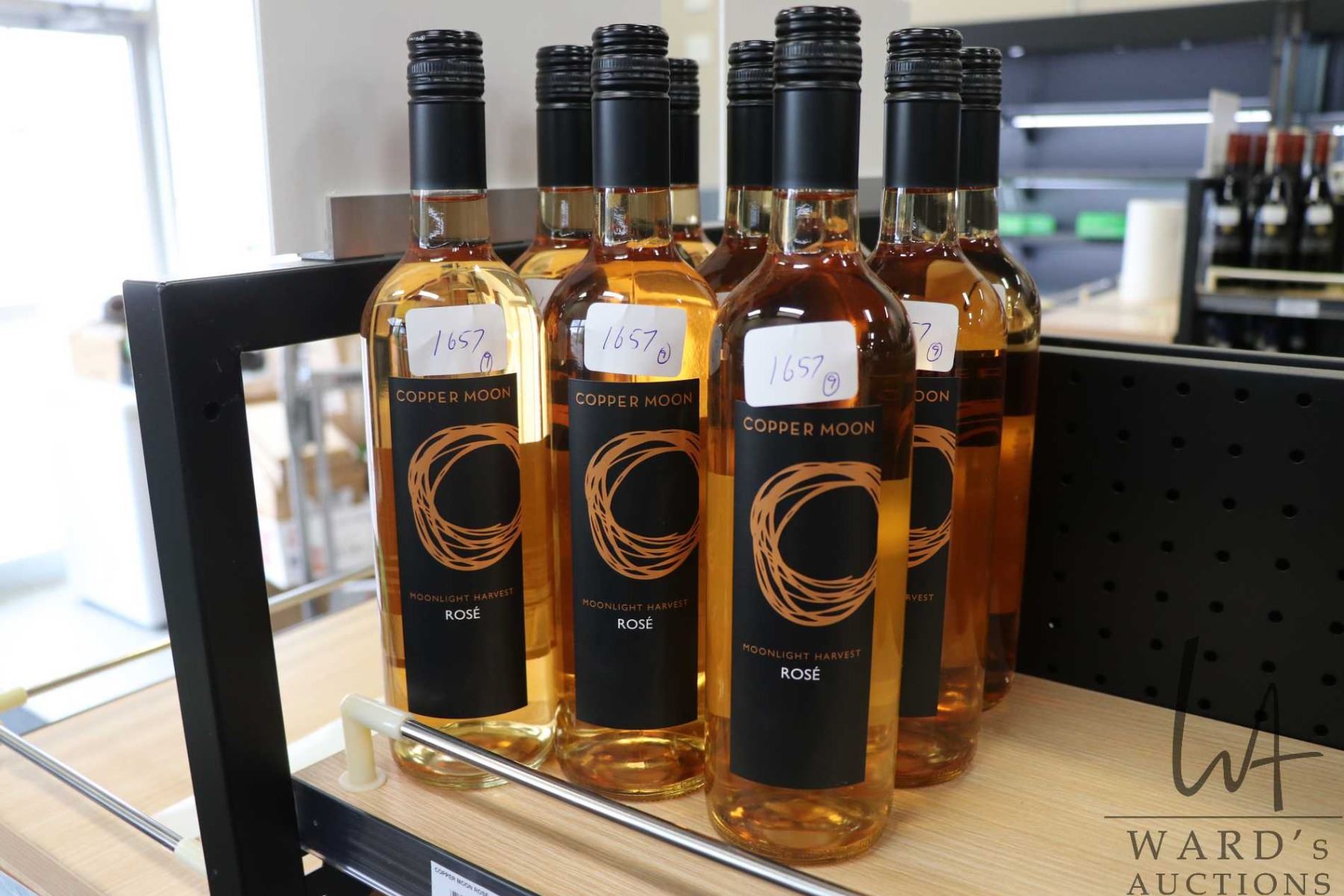 Nine bottles of Copper Moon Moonlight Harvest Rose / 750ml / 12.5% ABV Note: Alcohol cannot be insured by any courier in Canada. Local pick up is recommended. Canadian bidders only