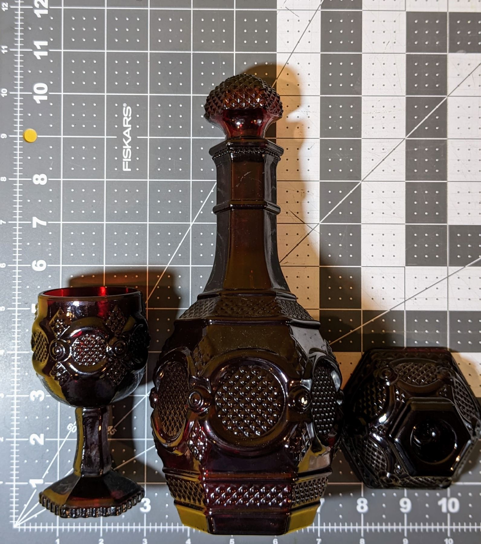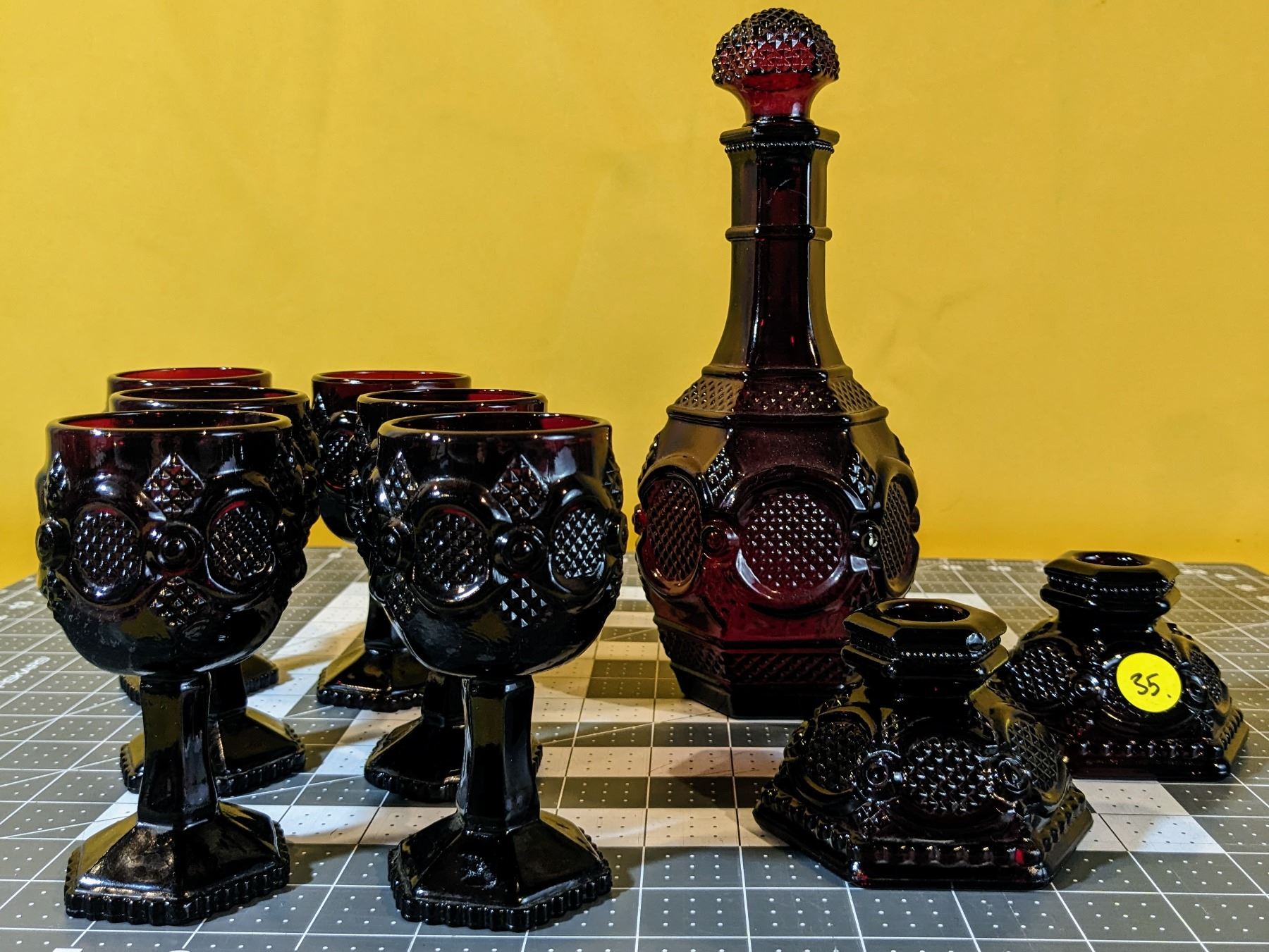 Nine pieces of Cape Cod ruby red glass in excellent condition.