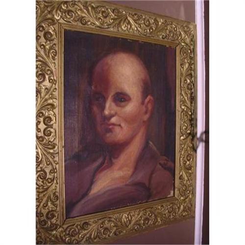 This handsome late nineteenth-century portrait?rich in umbers, browns and flesh-tones?depicts a rather mysterious gentleman. At once, he attracts you with his bold stare. His carefully trimmed dark hair brings out the deep tones of his piercing eyes and the lush pink and coral of his skin gives a sensuous strength to this work in oil on canvas.