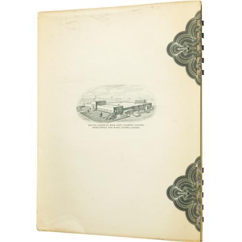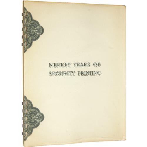 <B>Ninety Years of Security Printing The Story of the British American Bank Note Company Limited 1866 - 1956.</B></I> This is a spiral bound book of 25 pages. There are few pages of engravings. Previous owner's address stamp is on both inside front and back covers.<BR><BR><b>Shipping:</b> Coins & Currency (<a target="_blank" href="http://www.heritageauctions.com/common/shipping.php">view shipping information</a>)