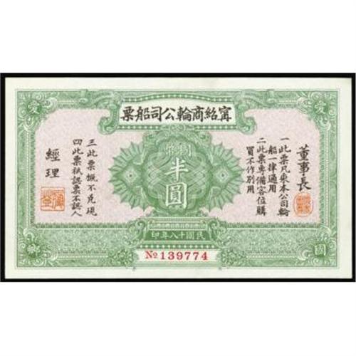 <style type="text/css"> body, td, th { font-family: Arial, Helvetica, sans-serif; font-size: 12px; color: #482424; margin: 0px; padding: 0px; } #header { background-image: url(http://www.bowersandmerena.com/ebay/images/template_v3_01.gif); clear: both; background-color: #590303; border-top-width: 2px; border-top-style: solid; border-top-color: #B38C4F; } #header #header_wrapper { height: 75px; clear: both; width: 800px; margin-right: auto; margin-left: auto; background-image: url(http://www.bowersandmerena.com/ebay/images/template_v3_03.gif); background-repeat: no-repeat; background-position: right; color: #F3EDCC; } #header #header_wrapper #header_logo { float: left; height: 75px; width: 444px; background-image: url(http://www.bowersandmerena.com/ebay/images/template_v3_02.gif); background-repeat: no-repeat; font-size: 10px; text-transform: capitalize; color: #B38C4F; } #header #header_wrapper #header_right { float: left; height: 75px; width: 356px; text-align: right; } #header #header_wrapper #header_right #headerLoginBtn { margin-bottom: 30px; } #header #header_wrapper #header_right input#txtSearch { color: #B49056; border: 1px solid #B49056; width: 175px; padding-top: 3px; padding-right: 3px; padding-bottom: 4px; padding-left: 3px; } #nav { height: 37px; background-image: url(http://www.bowersandmerena.com/ebay/images/template_v3_05.gif); clear: both; } #nav #nav_wrapper { height: 35px; width: 800px; margin-right: auto; margin-left: auto; border-left-width: 1px; border-left-style: solid; border-left-color: #B38C4F; } #nav #nav_wrapper a { padding-right: 15px; padding-left: 15px; border-right-width: 1px; border-right-style: solid; border-right-color: #B38C4F; height: 25px; padding-top: 10px; display: block; float: left; text-decoration: none; font-weight: bold; color: #5D0303; } #nav #nav_wrapper a:hover { color: #B38C4F; } #nav #nav_wrapper #search { float: right; padding-top: 7px; } #nav #nav_wrapper #search #txtSearch { font-family: Arial, Helvetica, sans-serif; font-size: 10px; text-transform: uppercase; color: #D2AE75; border: 1px solid #B38C4F; padding: 3px; } #content_bgd { background-image: url(http://www.bowersandmerena.com/ebay/images/template_v3_09.gif); background-repeat: repeat-y; background-position: center; padding-top: 15px; padding-bottom: 15px; background-color: #FBFBDB; } #content_wrapper { clear: both; height: auto; width: 800px; margin-right: auto; margin-left: auto; } .LotDetailWhite { line-height:normal; font-size:13px; font-family: arial,helvetica,sans-serif; color: White; font-weight: bold; } .LotDetailInformation { line-height:normal; font-size: 13px; font-family: arial,helvetica,sans-serif; } .LotDetailMessage { line-height:normal; font-size: 13px; font-family: arial,helvetica,sans-serif; color: red; } } tr.HeaderAuctionTitle td { color: #000000; font-weight: bold; padding: 2px; background-image: url(http://www.bowersandmerena.com/ebay/images/template_v3_05.gif); background-repeat: repeat-x; border-bottom-width: 1px; border-bottom-style: solid; border-bottom-color: #B38C4F; } table.AuctionSummary a, table.AuctionSummary a:link, table.AuctionSummary a:visited { color: #0000FF; text-decoration: none; } } td.tableHeaderLeft { border-left-width: 1px; border-left-style: solid; border-left-color: #B38C4F; } td.tableHeaderRight { border-right-width: 1px; border-right-style: solid; border-right-color: #B38C4F; } td.tableCellMiddle { border-left-width: 1px; border-left-style: solid; border-left-color: #B38C4F; border-right-width: 1px; border-right-style: solid; border-right-color: #B38C4F; padding: 5px; } tr.footer td { border-top-width: 1px; border-top-style: solid; border-top-color: #B38C4F; } </style> </head> <body> <div id="header"> <div id="header_wrapper"> <div id="header_logo"> </div> <div id="header_right"> </div> </div> </div> <div id="nav"> <div id="nav_wrapper"> <a href="http://www.bowersandmerena.com">Our eBayLive Auctions</a> <a href="#PaymentInfo">Payment Information</a> <a href="#ShippingInfo">Shipping Information</a> <a href="#About">About Bowers and Merena</a> </div> </div> <div id="content_bgd"> <div id="content_wrapper"> <table width="100%" border="0" cellpadding="5" cellspacing="0" class="AuctionSummary"> <tbody> <tr class="HeaderAuctionTitle" style="height: 25px;"> <td align="left" class="tableHeaderLeft" > </td> <td align="center" class="tableHeaderRight"> <span style="font-size: large;">Lot #925. Private, Local and Misc. Banks and Issuers. Ningpo Shaosing Steam Navigation Co. Fare Ticket.</span> </td> </tr> <tr> <td colspan="3" class="tableCellMiddle"> 1929, 50 cent, steamer ticket, CU condition, issued note, vignette of steamship on back, scarce transportation note.