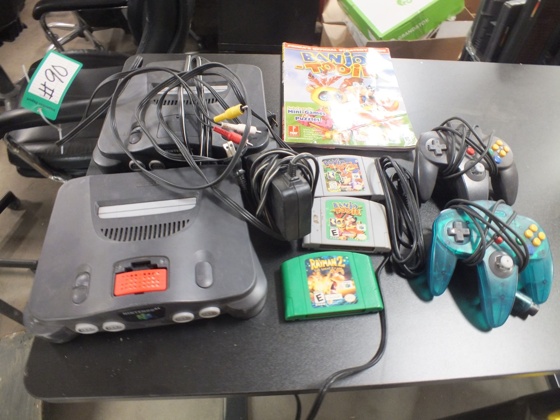Nintendo 64 Game System lot, you get 2 systems, only 1 is complete with cords, 3 controllers, you get games rayman 2, Banjo- tooie and banjo kzooie, sold as is, untested...used