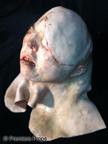 Nip/Tuck (2003-2010) - From the popular television show about two plastic surgeons, from episode “Rose & Raven Rosenberg” (Season 2, Episode 9) this is a prosthetic mask of an adult woman with a shaved head and marked up for plastic surgery. This is a mask that is split up the back and appears to go over an actors head. Very realistic with teeth. From the award winning Burman Studios. (10" x 13" x 10").