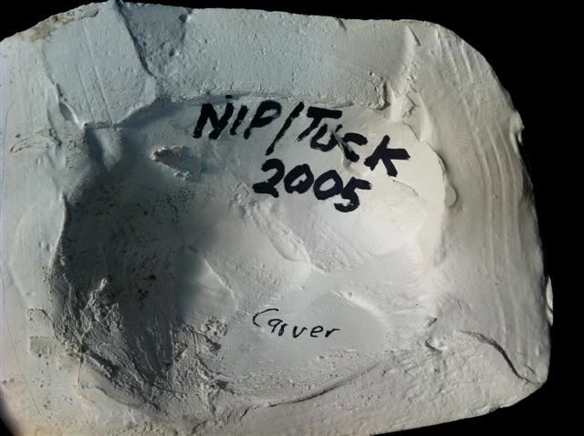 Nip/Tuck (2003-2010) - From the popular television show about two plastic surgeons, a plaster life cast of Bruno Campos who played the Carver. Written inside is "Nip/Tuck 2005". From the award winning Burman Studios. 9" x 6" x 5"