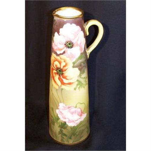 Fantastic 11-1/4" Nippon ewer - great poppy scene! The workmanship on this piece is wonderful.
