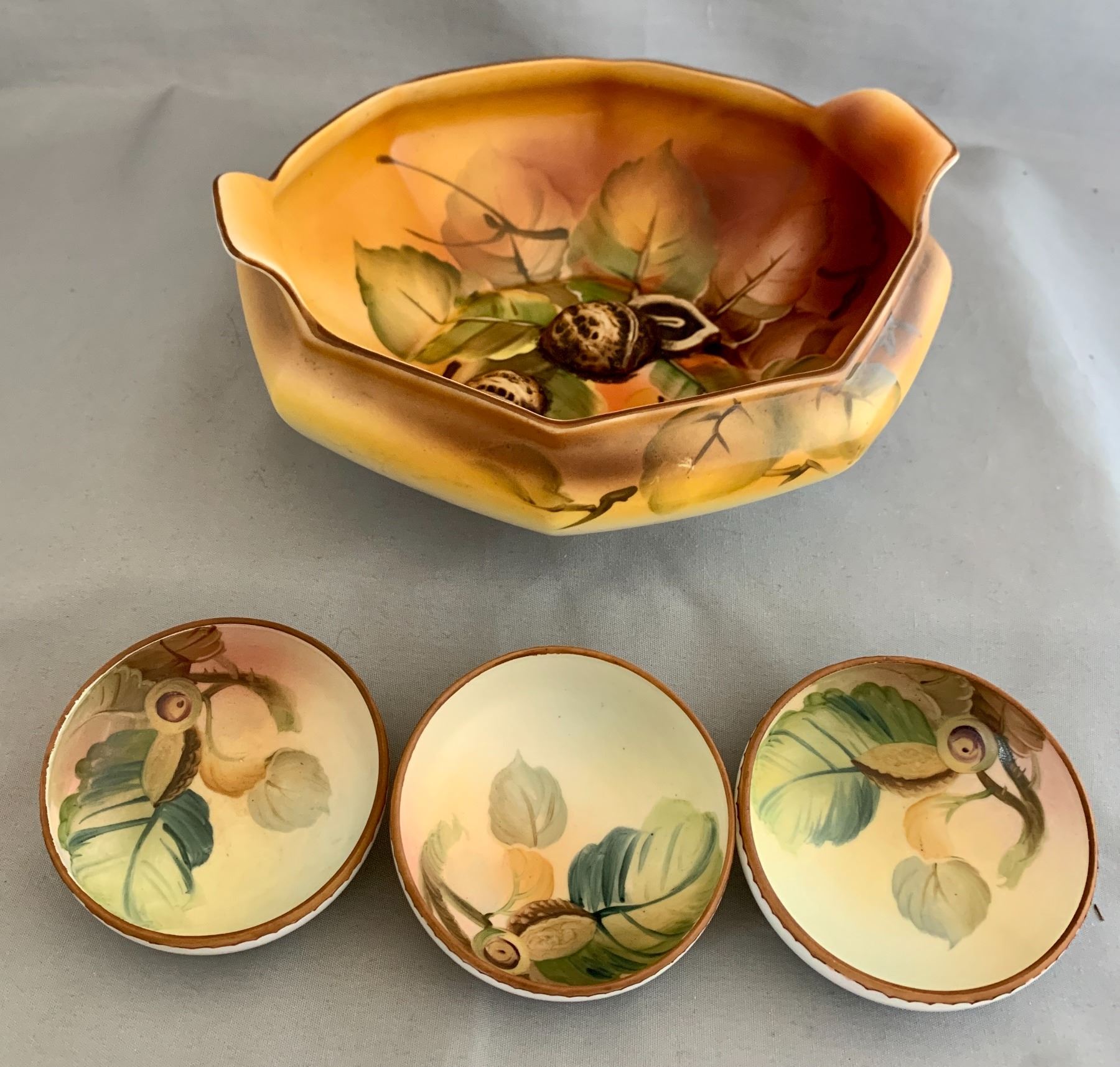 Nippon (4)-Pc. Set with Large Nut Bowl & (3) Small Nut Cups (1950s)