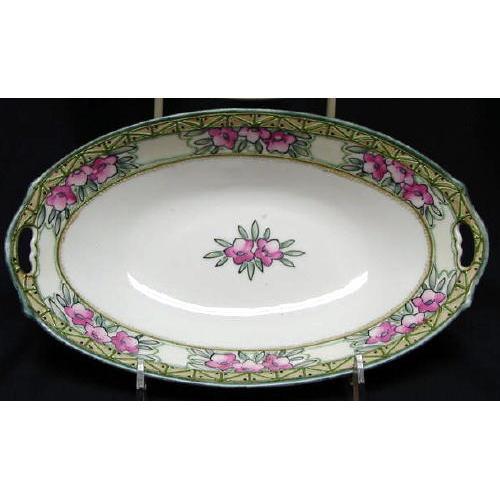<tr><td>Title:Nippon 8-1/2" Oblong Dish - Floral/Moriage</td></tr>