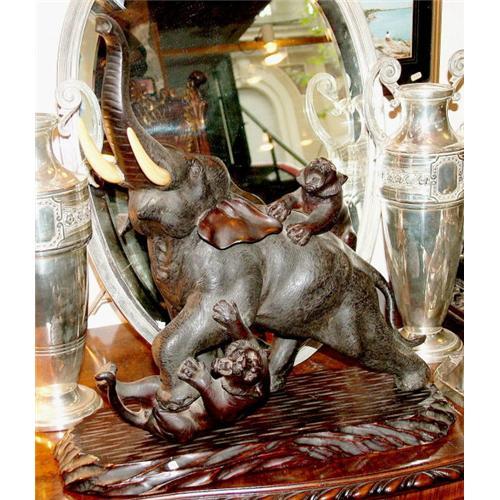 <tr><td>Title:Nippon Bronze elephant and tigers signed</td></tr>