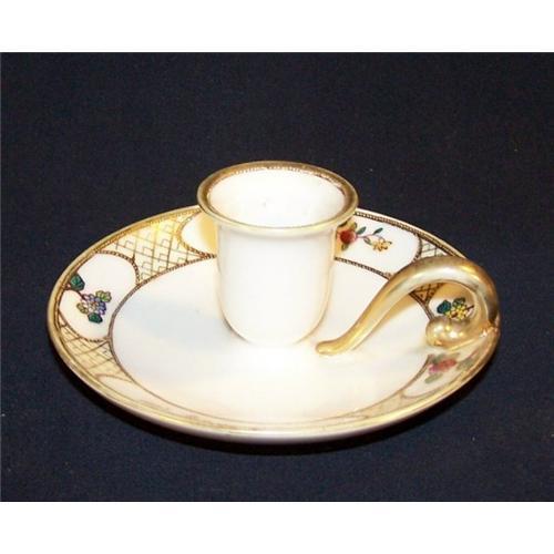 Nippon chamberstick. Measures 4-1/2" in diameter Gold beading surround the edge of the piece as well as the inside band and the lip of the actual candle holder.