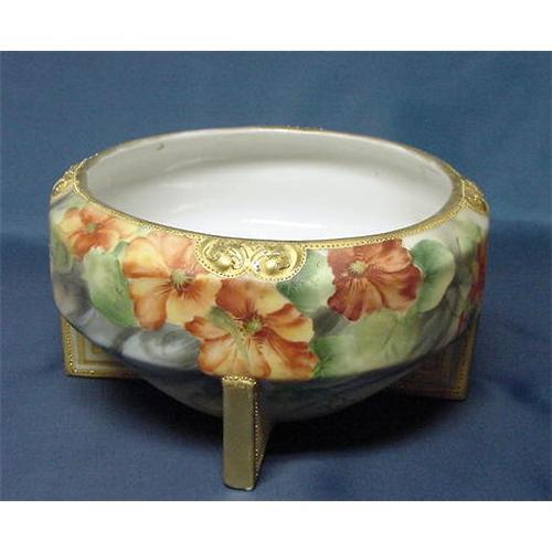 Absolutely stunning Nippon geranium bowl in a most unusual shape. The artistry of this bowl far exceeds that of the usual Nippon artist. This piece is of such quality as one would come to expect of the Pickard artists.