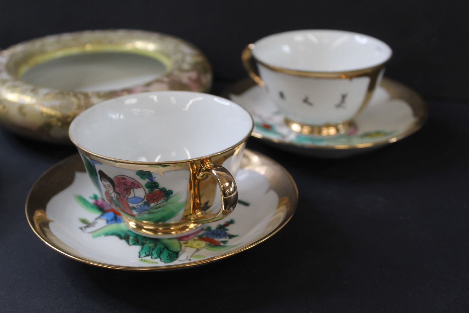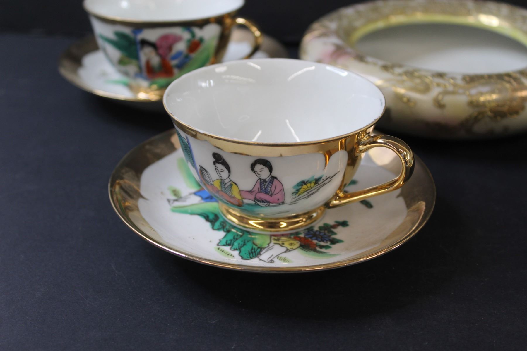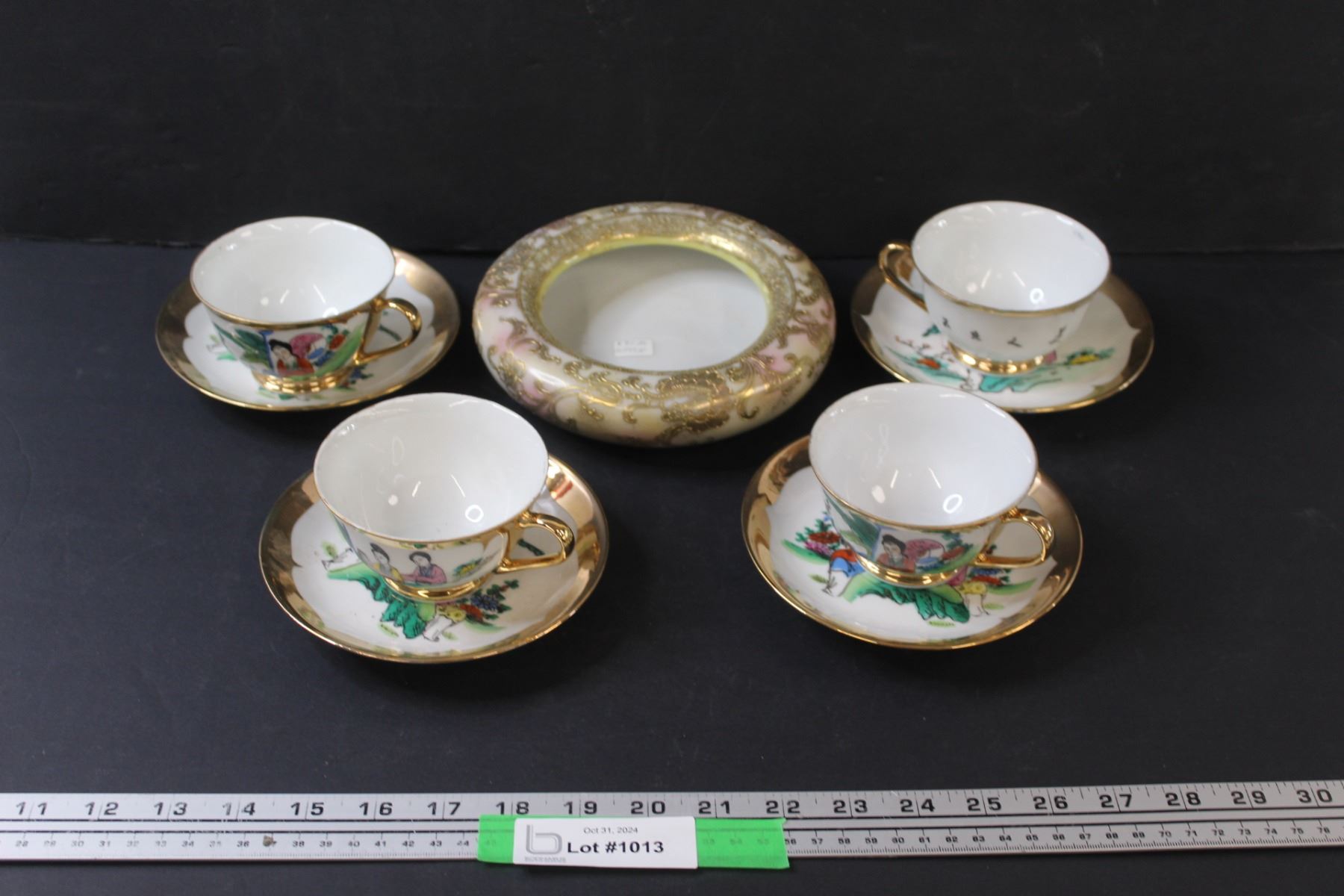 Nippon Hand Painted Dish & (4) Asian Tea Cup & Saucer Set
