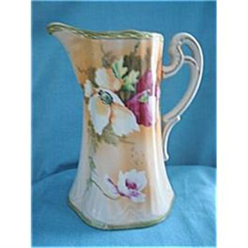<table width="100%" border="0" cellspacing="0" cellpadding="4"><tr><td><em> </em></td></tr><tr> <td width="100%"> This beautiful Nippon porcelain hand painted chocolate pot is marked: Hand Painted/Nippon under an Arch in Green. <BR>Nippon, Japanese hand painted porcelain was made for export between 1891 and 1921. This piece has the green mark, according to Kovels New Dictionary of Marks, page 125-D of TORll, Japan 1895-1921. <BR>The majority of the marks are found in 3 different colors: green, blue, or magenta. Colors indicate the quality of porcelain used: green for first grade porcelain, blue for second grade, and magenta for third grade.<BR>This is a high quality porcelain cocoa pot and the floral design of magenta, green and browns on a cream background is exquisitely done, on the front and on the back as well, unfortunately there is No Lid. In great condition, it has a dot flaw in the glazing and measures; 7 1/4 inches tall, 3 1/2 inches by 6 1/2 inches spout to handle, and 4 3/4 inches by 5 inches across the base. A lovely addition to any cocoa pot collection.<BR>SH & Ins. will be quoted after orders placed. If you have questions please contact me and thank you for looking. </td></tr><tr> <td> </td></tr><tr> <td>Reference #: npnchoc06</td></tr><tr><td>Condition:See Description</td></tr><tr><td>Year:See Description</td></tr><tr><td>Title:Nippon Hand Painted Floral Chocolate Pot</td></tr><tr><td>Location:New York, USA</td></tr></table>