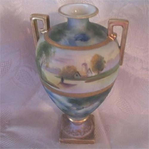 Nippon hand painted scenic footed 8" vase.1891-1921 Excelent condition, no damage.