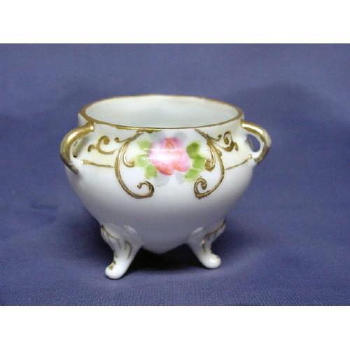 Beautiful Nippon tri-footed nut dish with roses and gold slip trail (completely intact). Only very minimal gold wear on the tiny little handles. No chips, cracks or hairlines.