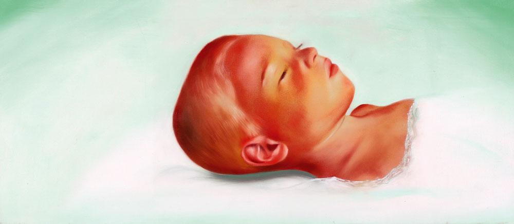 Nir hod, Israeli Art, B. 1970, Sleeping Child, Oil on canvas, 36x82cm, Signed on the reverse., , , , ,