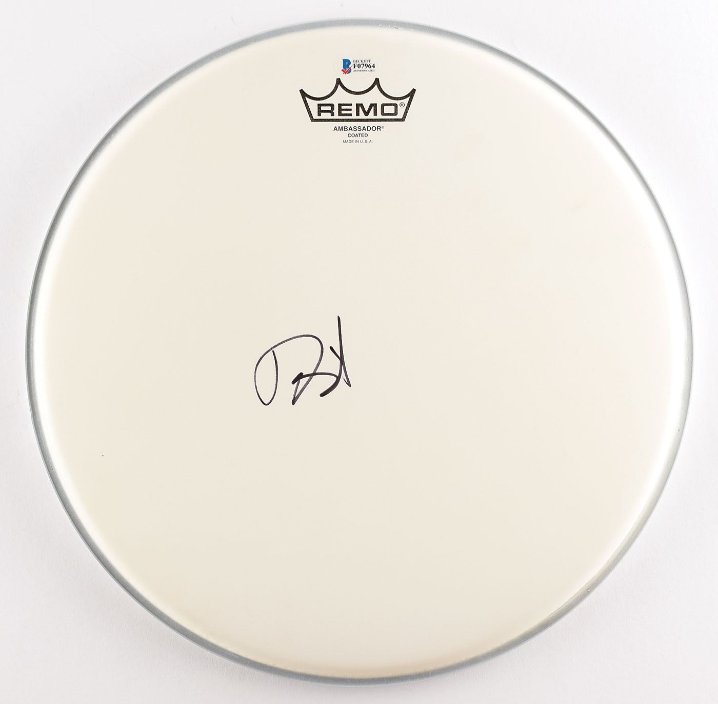 Off-white coated Remo Ambassador drum head, 14.5? in diameter, signed in black felt tip by Dave Grohl. In fine condition, with a Beckett authenticity label affixed to upper portion. Accompanied by a certificate of authenticity from Beckett Authentication Services.