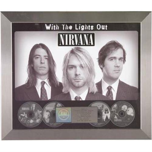 <B>Nirvana "With the Lights Out" RIAA Platinum Award.</B></I> Presented to Record & Tape Traders to commemorate the sale of more than one million copies of the 2004 triple-CD and DVD single box set. Rumors of a posthumous Nirvana box set first surfaced in the mid-1990s, not long after the death of singer and guitarist Kurt Cobain in 1994. It was eventually announced that a 45-track box set would be released in September 2001, to mark the 10th anniversary of <I>Nevermind,</B></I> but it was delayed by a legal battle between Cobain's widow, Courtney Love, and surviving Nirvana members Dave Grohl and Krist Novoselic, primarily over the song "You Know You're Right." The matter was settled in 2002, opening the way for the anthology set. The award is framed to an overall size of 27.5" x 23.5" and in Excellent condition.<BR><BR><b>Shipping:</b> Framed - with Glass, Small (<a target="_blank" href="http://www.heritageauctions.com/common/shipping.php">view shipping information</a>)