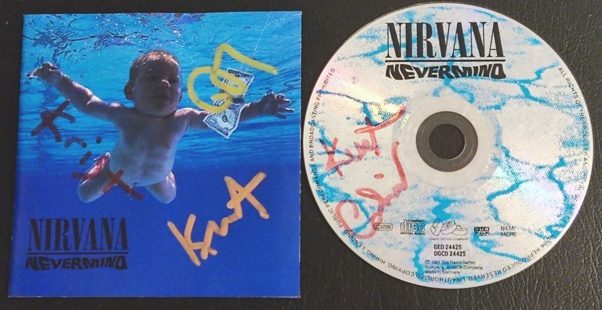 Inlay signed by 'Kurt Cobain' 'Dave Grohl' and 'Chris Novoselic'