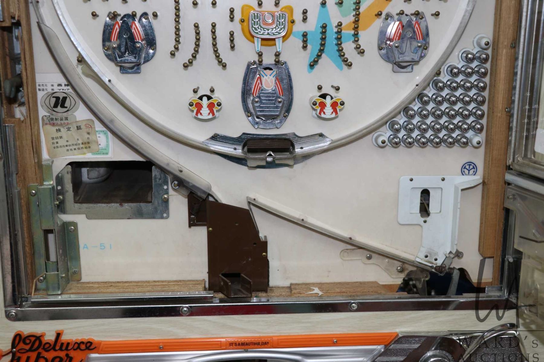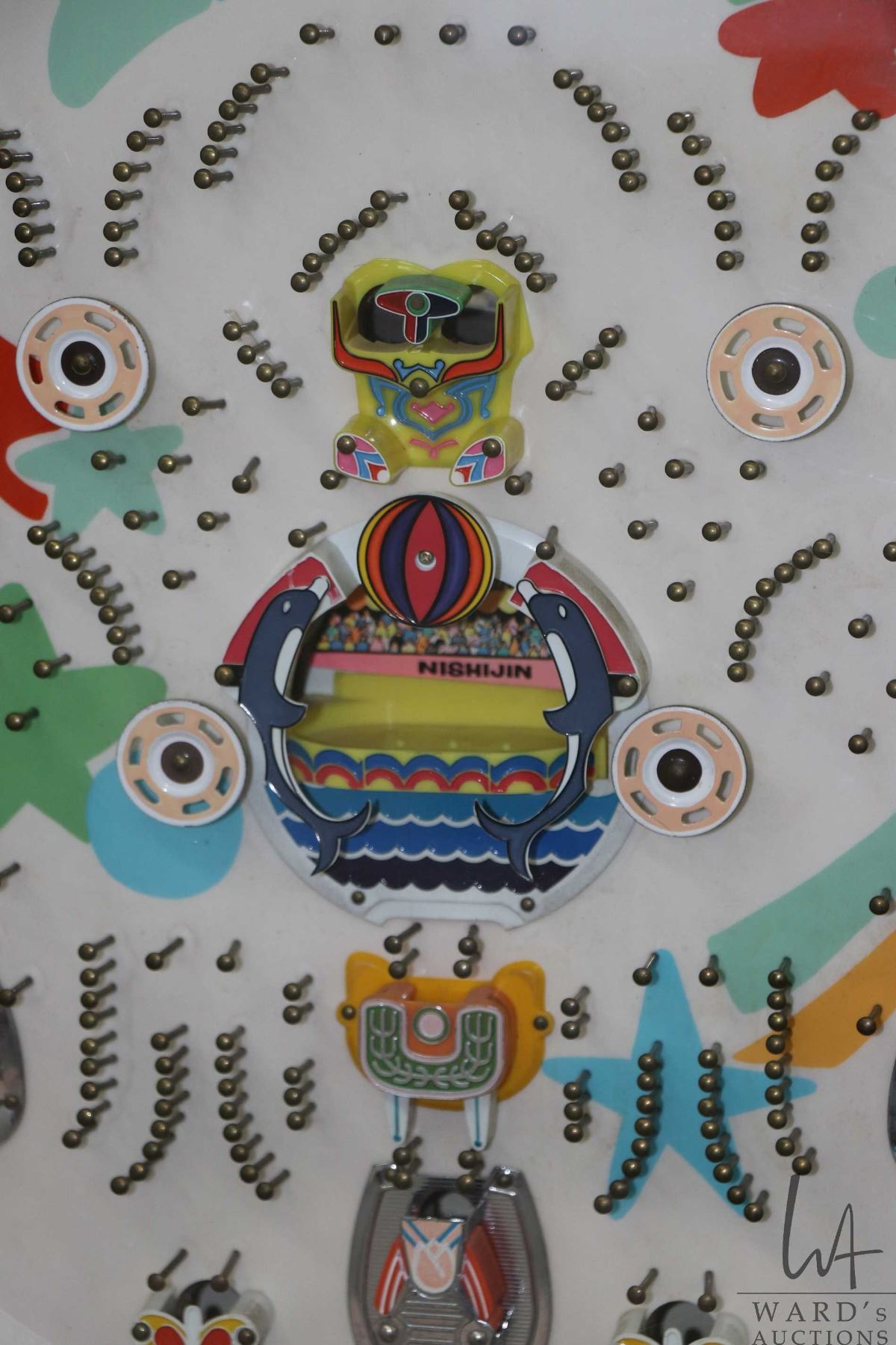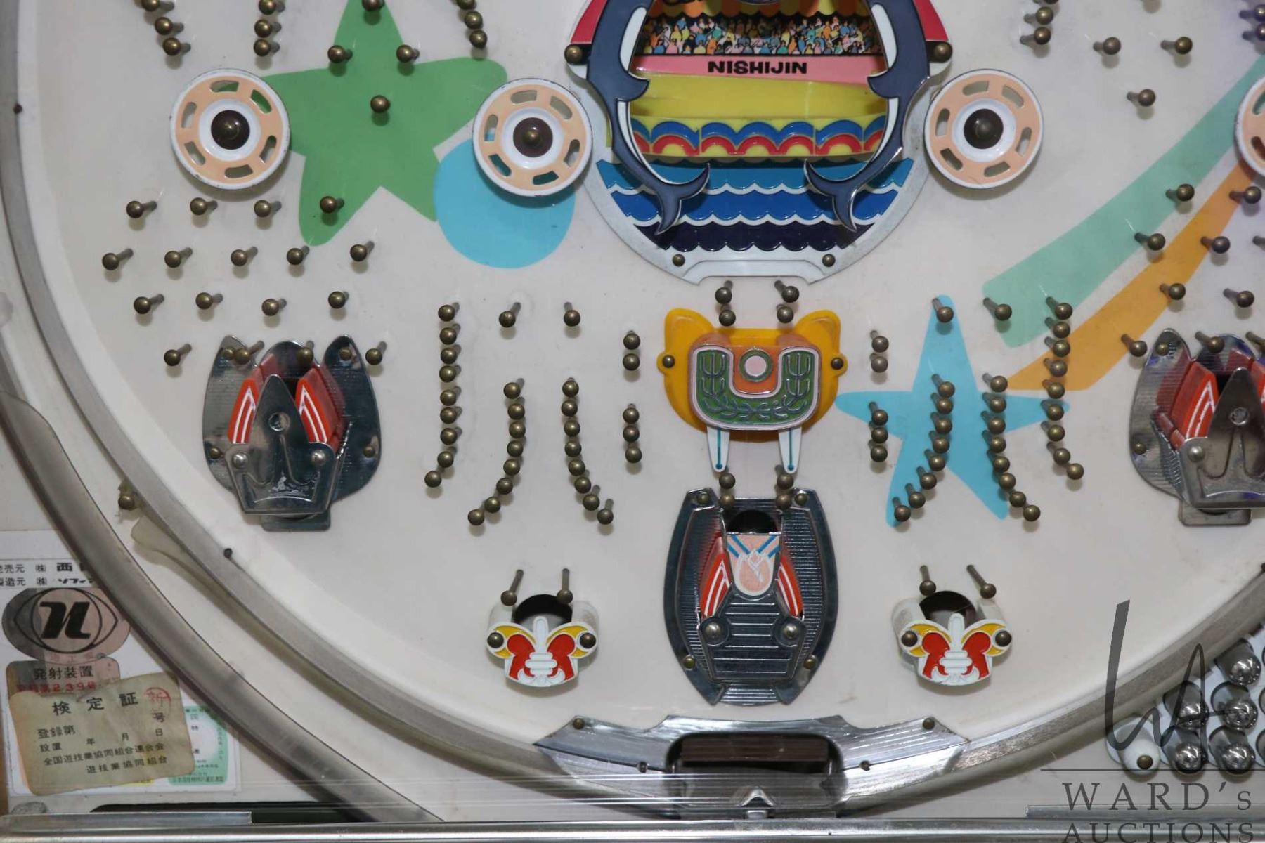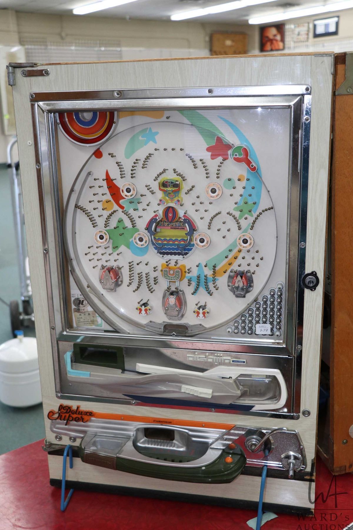 Nishijin Super Deluxe Patchinko machine with balls, working at time of cataloguing, needs 9V battery for lights, 32" X 20 1/2"