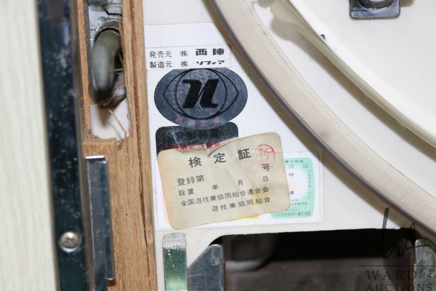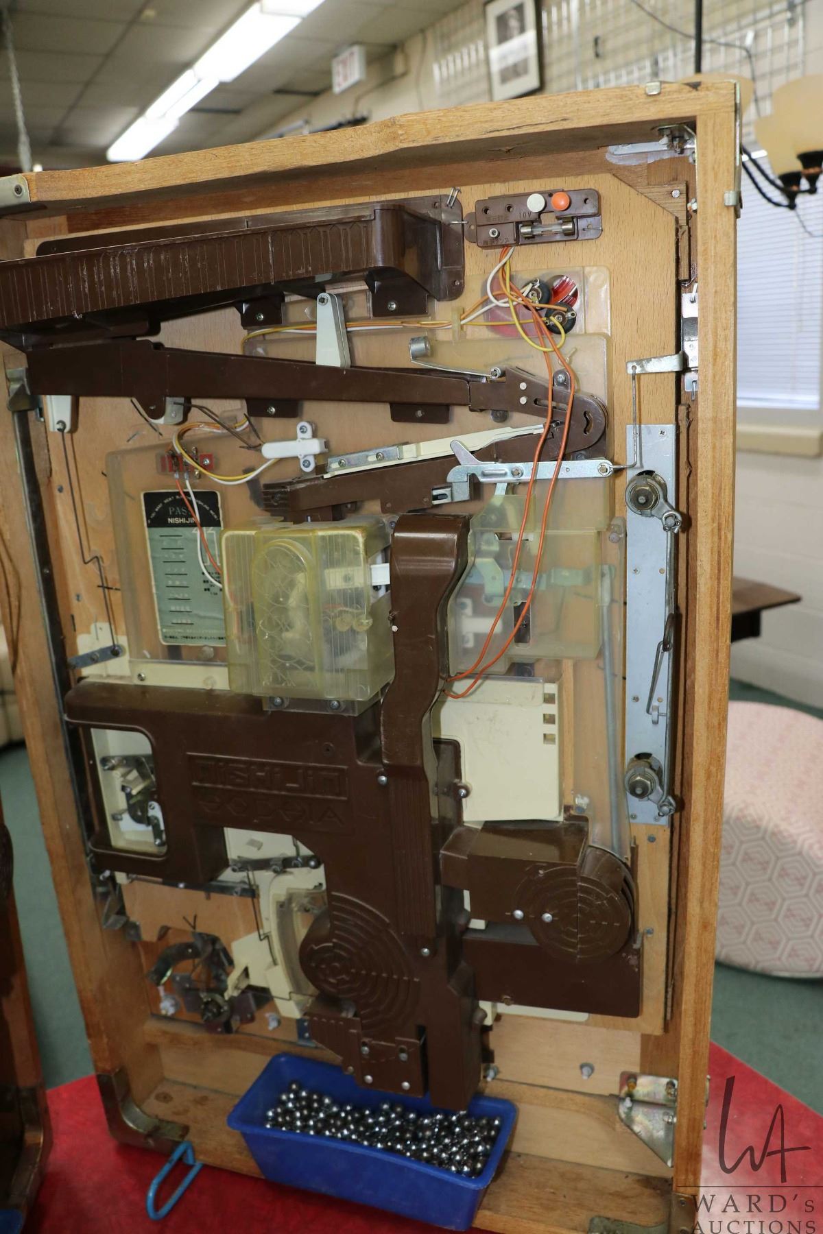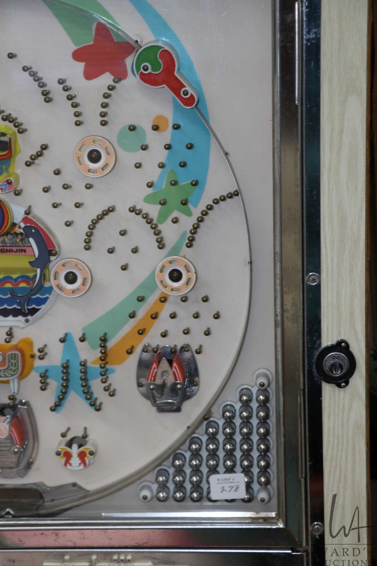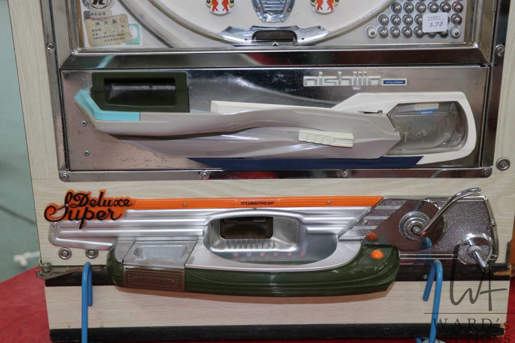 Nishijin Super Deluxe Patchinko machine with balls, working at time of cataloguing, needs 9V battery for lights, 32" X 20 1/2"