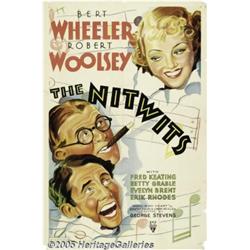 <B>Nitwits (RKO, 1935)</B></I> One Sheet (27" X 41"). George Stevens directed the classic comedy team of Wheeler and Woolsey in this comedy that featured a very young Betty Grable. There are two chips off of the lower left and right corners and a chip off of the upper right corner. The poster also has a couple of small chips out of the right border and several pinholes around the edges. Other than this, the poster is in outstanding condition. Fine/Very Fine.