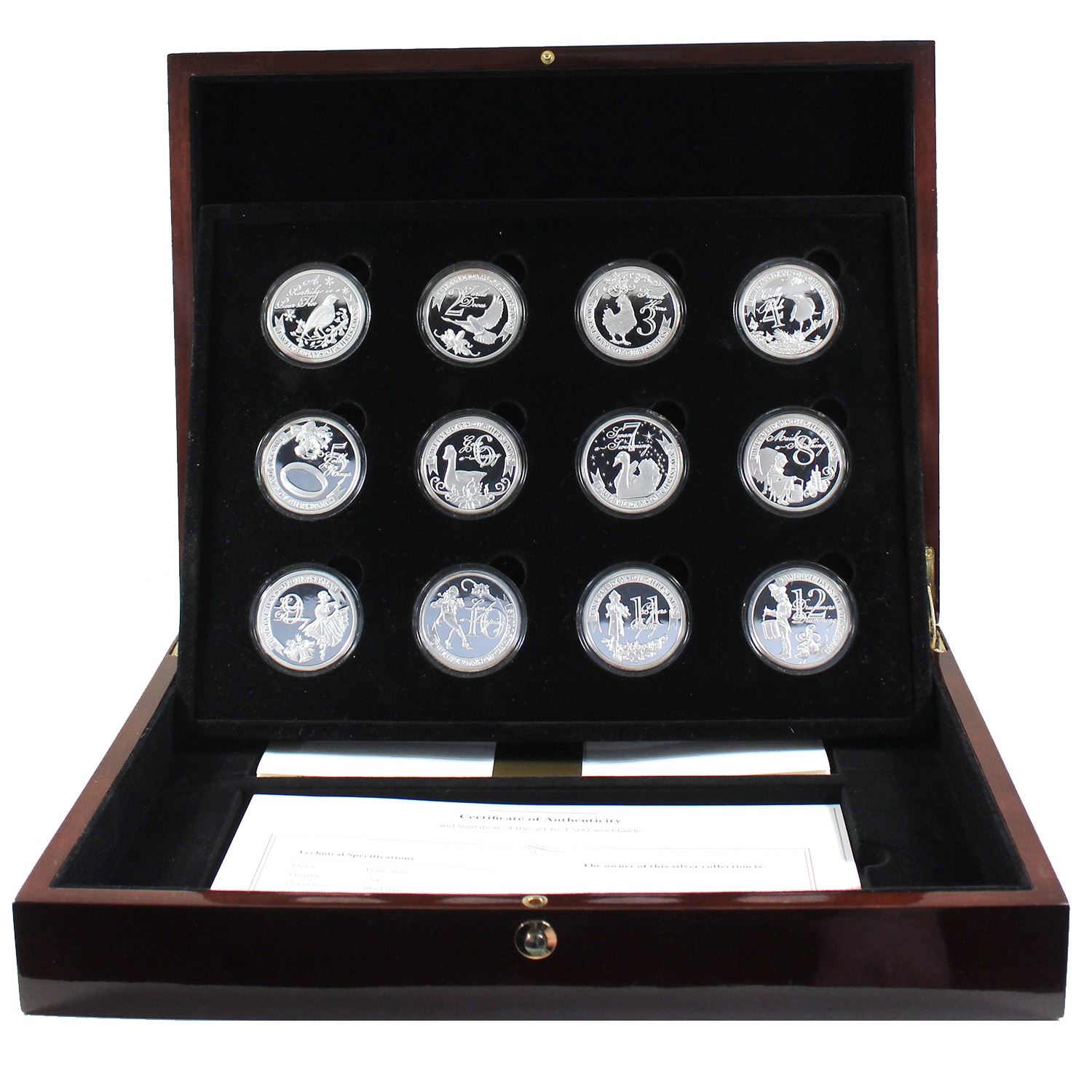 *Niue 2010 $2 Twelve Days of Christmas 12-Piece Set of Fine Silver Coins. This set features a coin depicting each verse in the famous song for each of the 12 days, a music sheet for the song, a small booklet on the origin and history of the song and a COA. Limited Mintage of Only 1500 Sets!! Separation of glue of coin tray within case. (Tax Exempt)