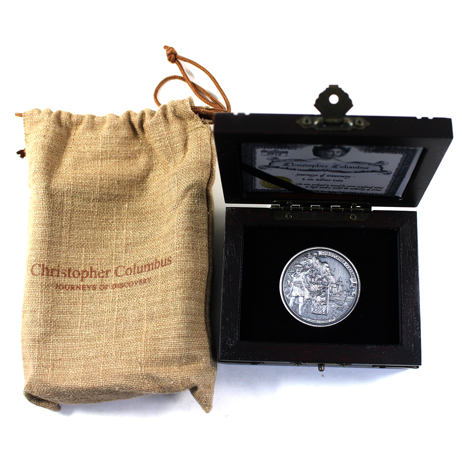 Niue 2016 $5 Journeys of Discovery-Christopher Columbus 2oz Fine Silver Coin with Antique Finish. Mintage of Only 2000! (Tax Exempt)