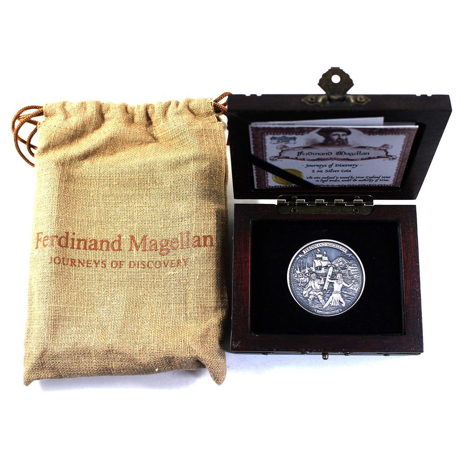 Niue 2016 $5 Journeys of Discovery-Ferdinand Magellan 2oz Fine Silver Coin with Antique Finish. Mintage of Only 2000! (Tax Exempt)