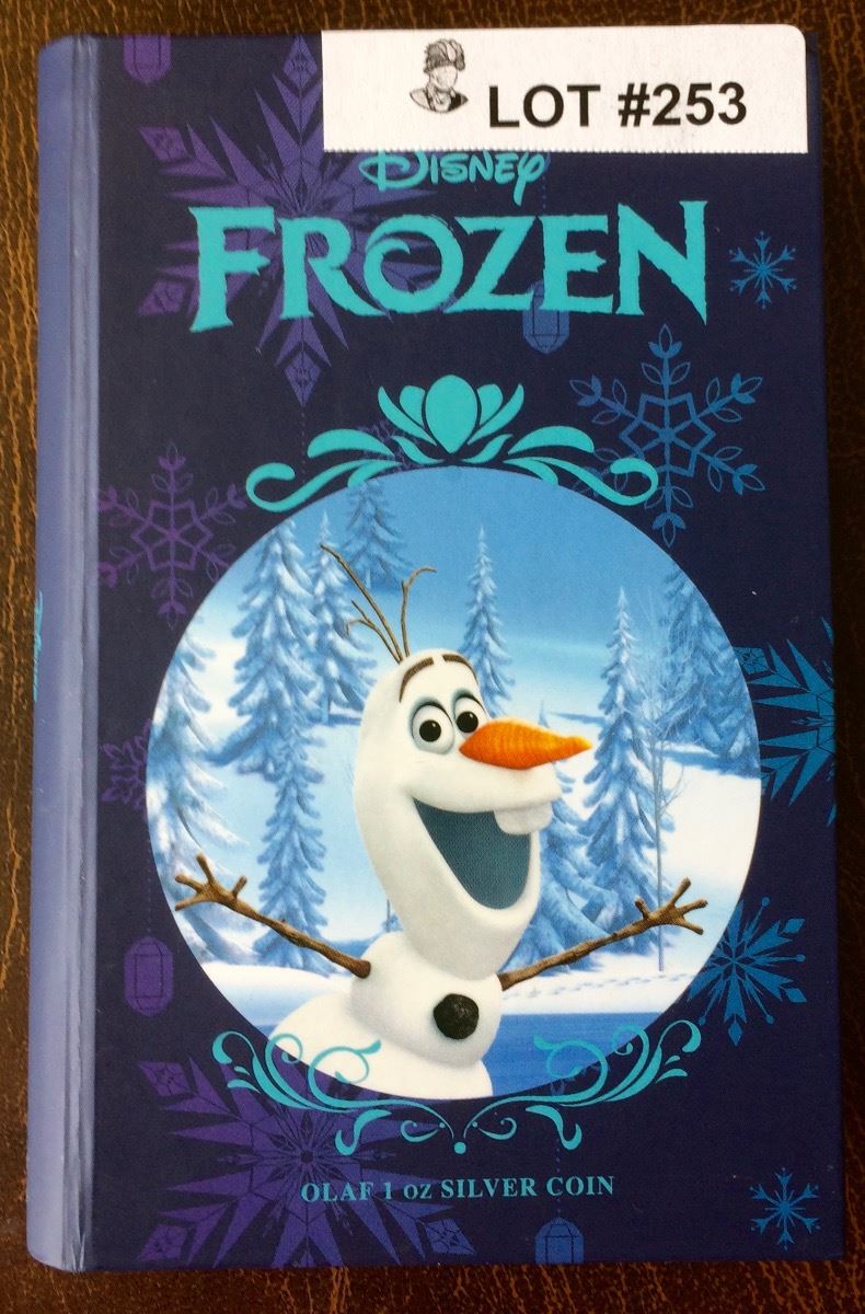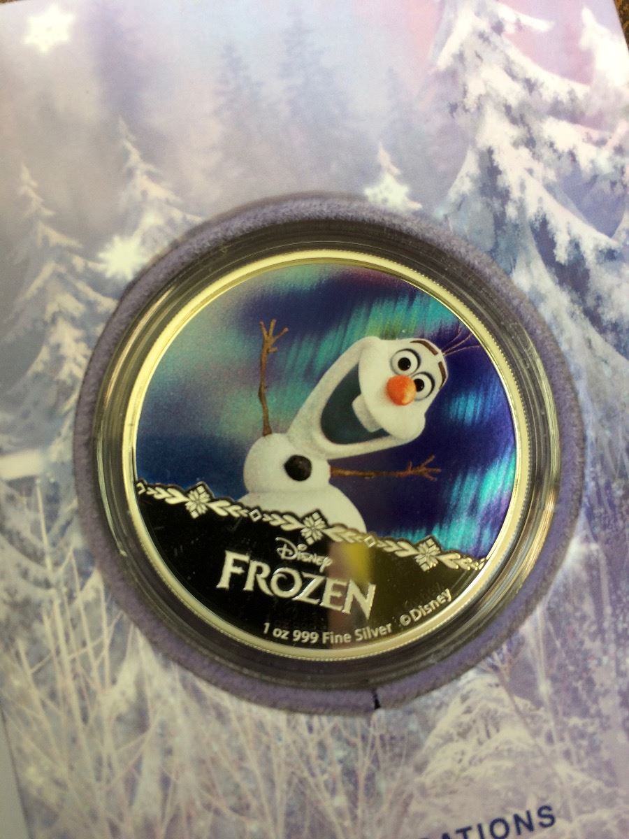 Niue Mint: 2016 Disney Frozen 1 Oz .999 pure Silver Coin - OLAF The Enchnated Snowman Having Fun, Under the Shimmering Northern Lights in the Kingdom of Arendelle.