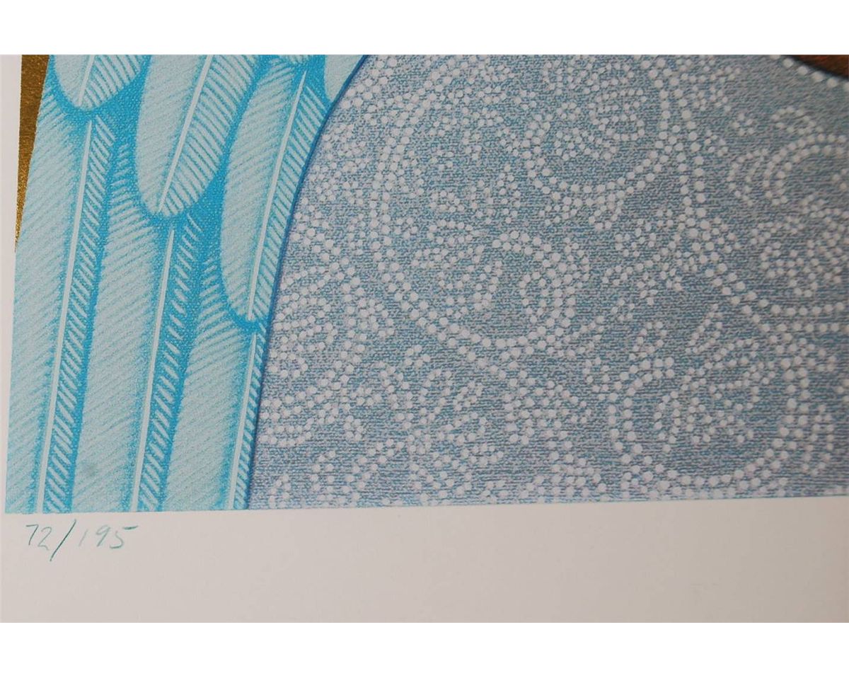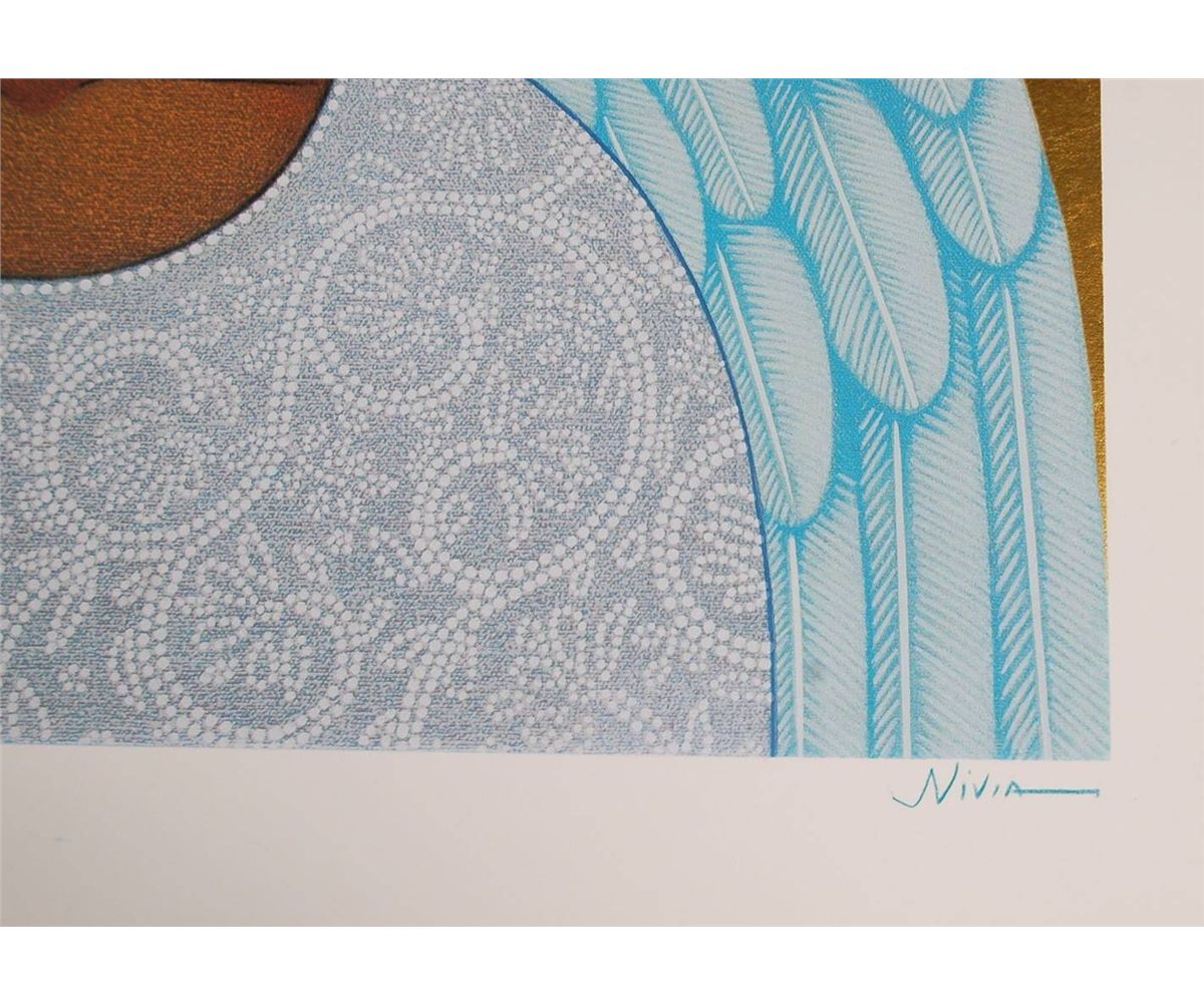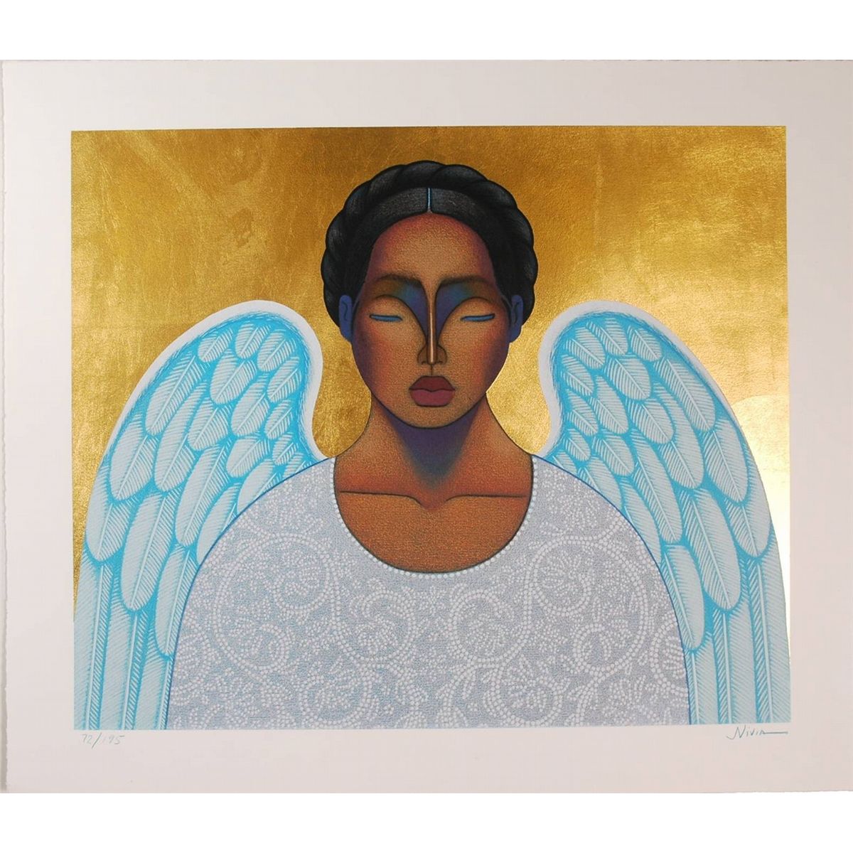 Nivia Gonzalez "Angelita" Hand Signed & Numbered Limited edition Serigraph with gold leaf, signed in color pencil, from the numbered edition 195, image 18 x 21 ½”; Unframed