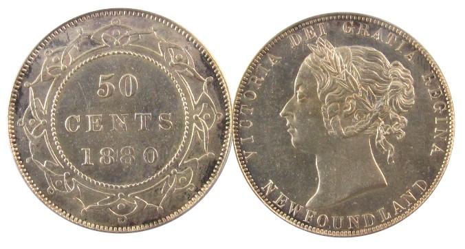 Nlfd 1880 50¢ PCGS MS62. Key date example with full strike and superb lustre. Top 2 by PCGS standards. Very rare in this condition. Worth a premium bid.