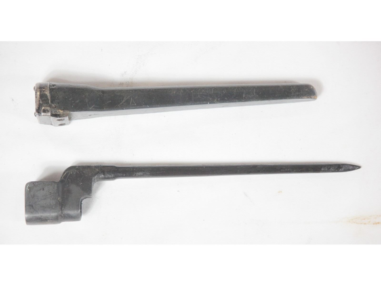 Blade measures 8", overall 9.75". Socket stamped N67 which is Singer Manufacture. Overall like it left the factory, in grease. Rare victory plastics scabbard, missing frog.