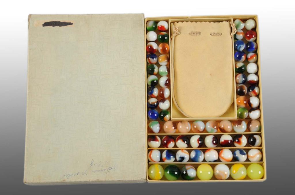 Manufacturer is unknown. Appears to be complete with original marbles and bag. Size Box: 9" x 6 - 1/4"